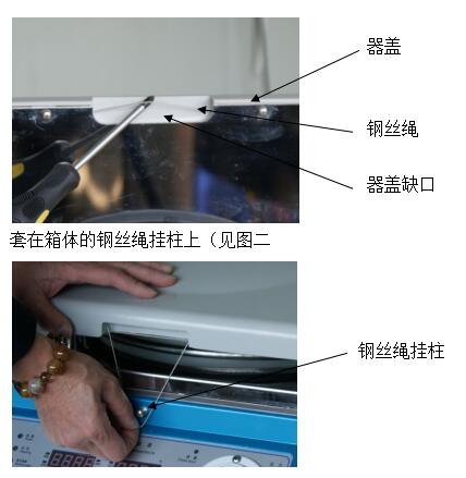 到達開蓋的溫度后,用左手扶壓住機蓋,右手手指拉出器蓋正前方缺口內的鋼絲繩。(見圖一)