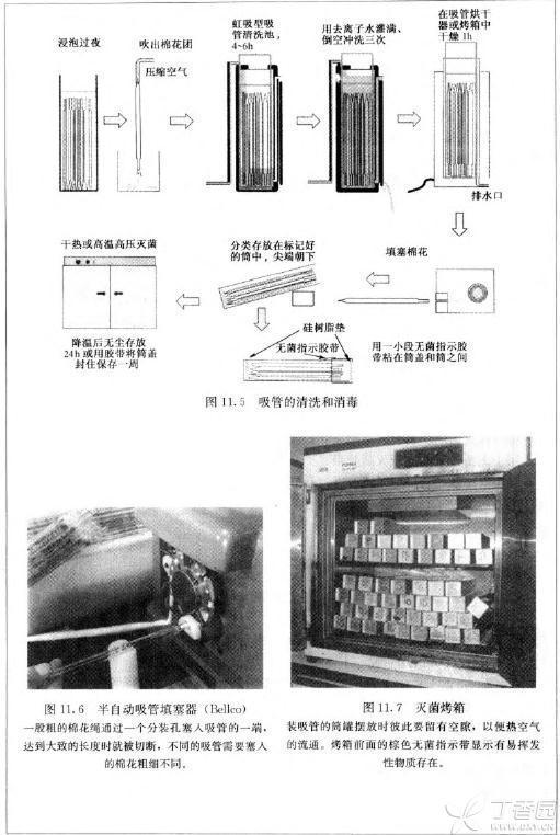 5. 干熱滅菌,160°C 1 h。要盡可能少用膠帶,或換用溫度指示標(biāo)簽(Alpha Medical;Bennnet),此標(biāo)簽很小并不含爆炸性物質(zhì)。要在烤箱的中心檢測溫度,以保證這個**難到達(dá)的部位也能滿足**低的滅菌條件。要保證烤箱 中的罐子之間有一定的空隙,這樣可以使熱空氣流通(圖 11.7)。