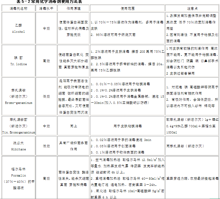 此外,尚可應用甲醛或過氧乙酸等進行熏蒸滅菌(詳見表5-2)。